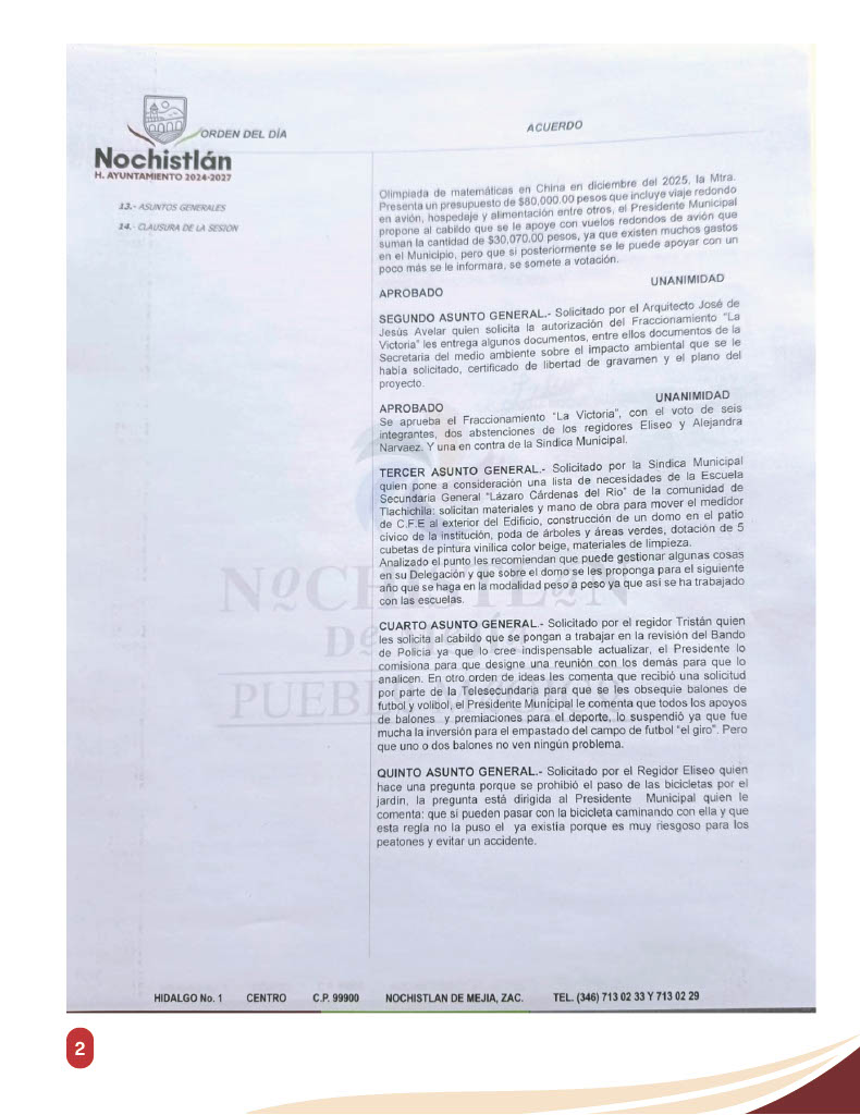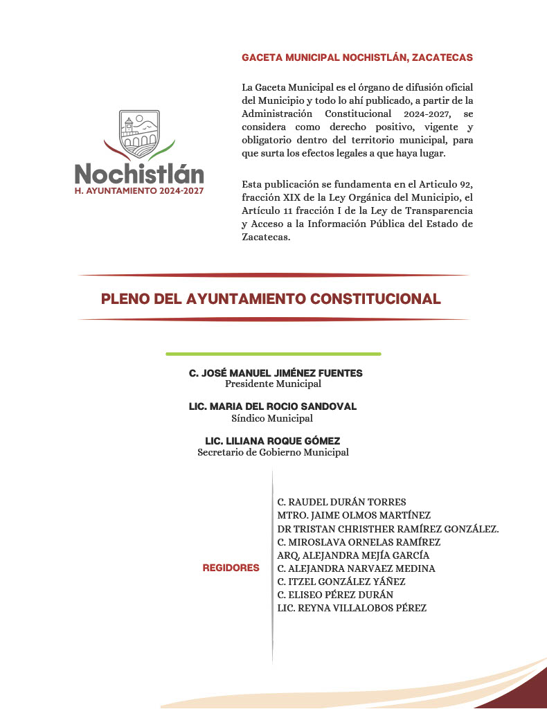 Presidencia Municipal de Nochistlán de Mejía, Zac. | Hidalgo No. 1, Colonia Centro | C.P. 99900 | Teléfonos: (346) 713 0229 y 713 0233