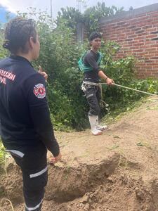 El personal de Protección Civil y Bomberos de Nochistlán llevó a cabo el rescate de una perrita que había caído en una noria dentro de un lote baldío ubicado en la prolongación González Ortega.