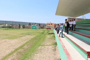 El presidente municipal, acompañado del contratista y el supervisor de obra, realizó una visita al Campo de Fútbol El Giro para revisar los últimos detalles previos al inicio de los trabajos.