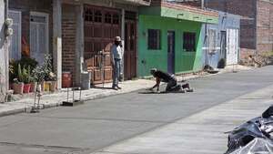 El presidente municipal José Manuel Jiménez Fuentes, acompañado por directores del Ayuntamiento, realizó la supervisión de los trabajos de pavimentación con concreto hidráulico en la calle Elizabeth Del Real.